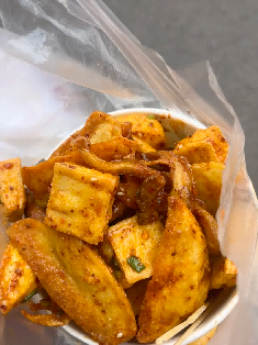 云南昆明小众炸物,避开鲜花饼,炸洋芋切块油炸,外酥里嫩,搭配折耳根、辣椒、香菜,香辣入味,口感丰富,是云南街头的爆款小吃,小众又解馋,香辣过瘾。
