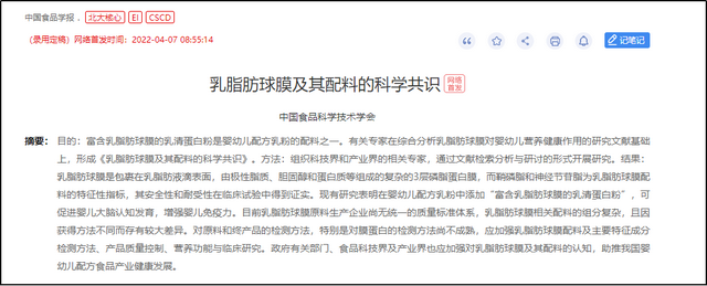 首份《乳脂肪球膜及其配料的科学共识》于《中国食品学报》刊发