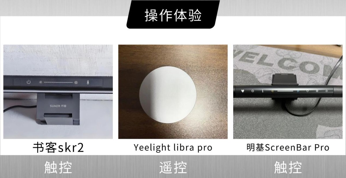 书客SKR2、明基 ScreenBar Pro采用触控操作,响应速度快、延迟低,轻触即可完成亮度与色温调节,但需要手动接触灯体,远程操控便利性相对有限。