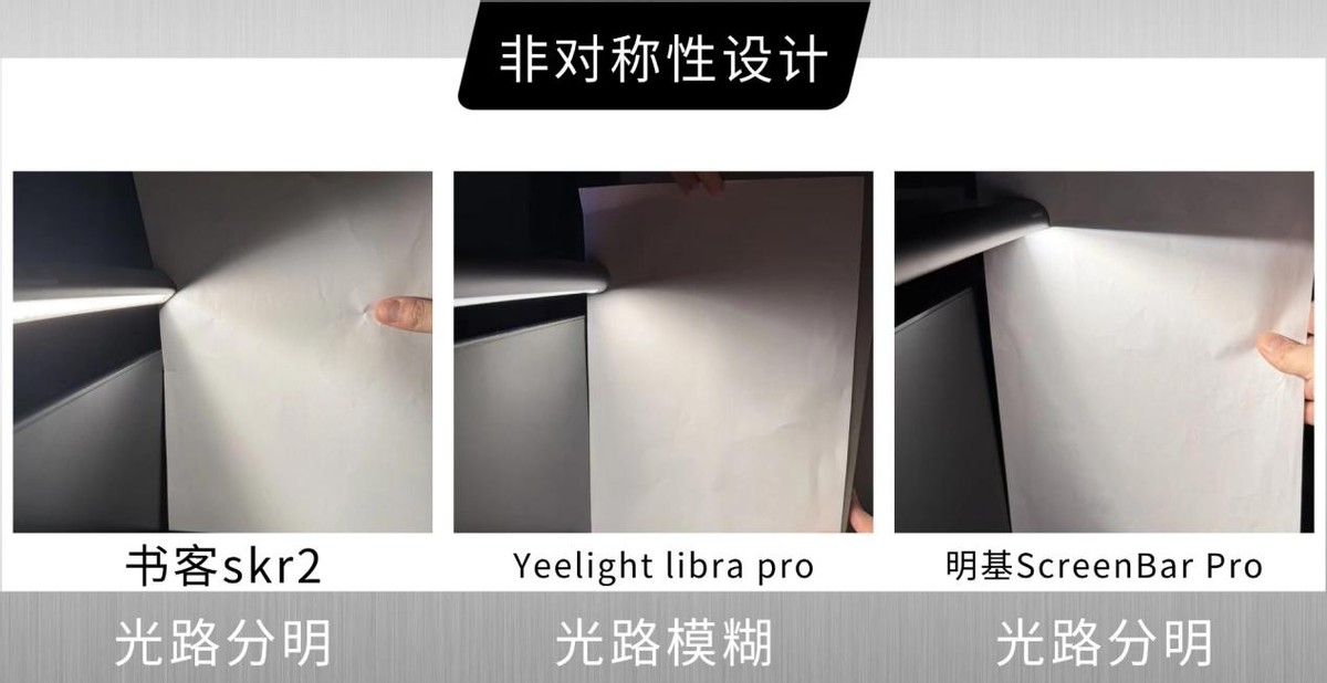 测试屏幕挂灯的非对称光学设计,本质上是为了验证光线是否能够按照设计路径被有效引导——也就是尽量只照亮桌面区域,而避免直接进入屏幕造成反光。