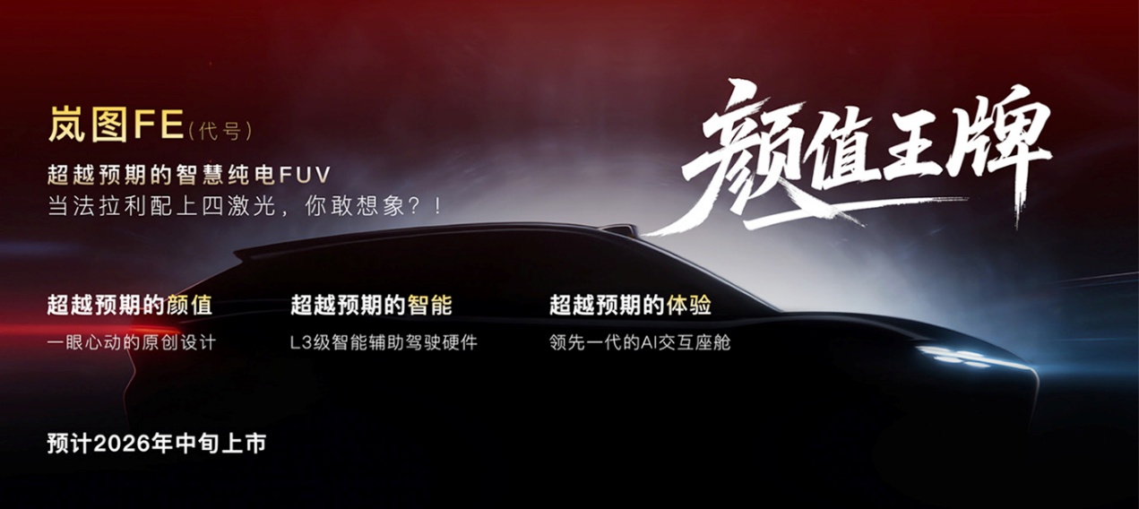 如果说泰山系列是岚图在主流豪华市场的深耕,那么代号“FE”的全新FUV,则是一次面向年轻群体的“叛逆出圈”。这款被网友戏称为“法拉岚”的车型,以其极具冲击力的先锋运动设计,意图打破市场对岚图乃至华为系产品相对沉稳的刻板印象。然而,其内核依旧坚实:同样搭载行业领先的四激光雷达感知系统和L3级智能驾驶硬件,并配备新一代AI交互智能座舱。这表明,岚图并非简单追求造型的年轻化,而是决心以顶级的智能科技作为吸引新一代消费者的核心武器。“FE”瞄准的是那些既追求颜值与个性,又绝不妥协于科技体验的年轻用户,它预示着岚图品牌形象的多元拓展与用户圈层的主动下探。