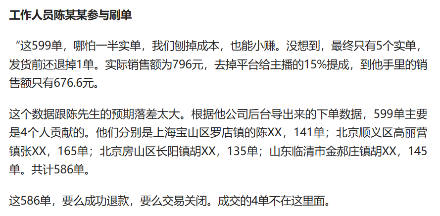 虽然双方没有约定具体销售额,不过因为存在刷单行为,最终陈先生收到了全额退款。