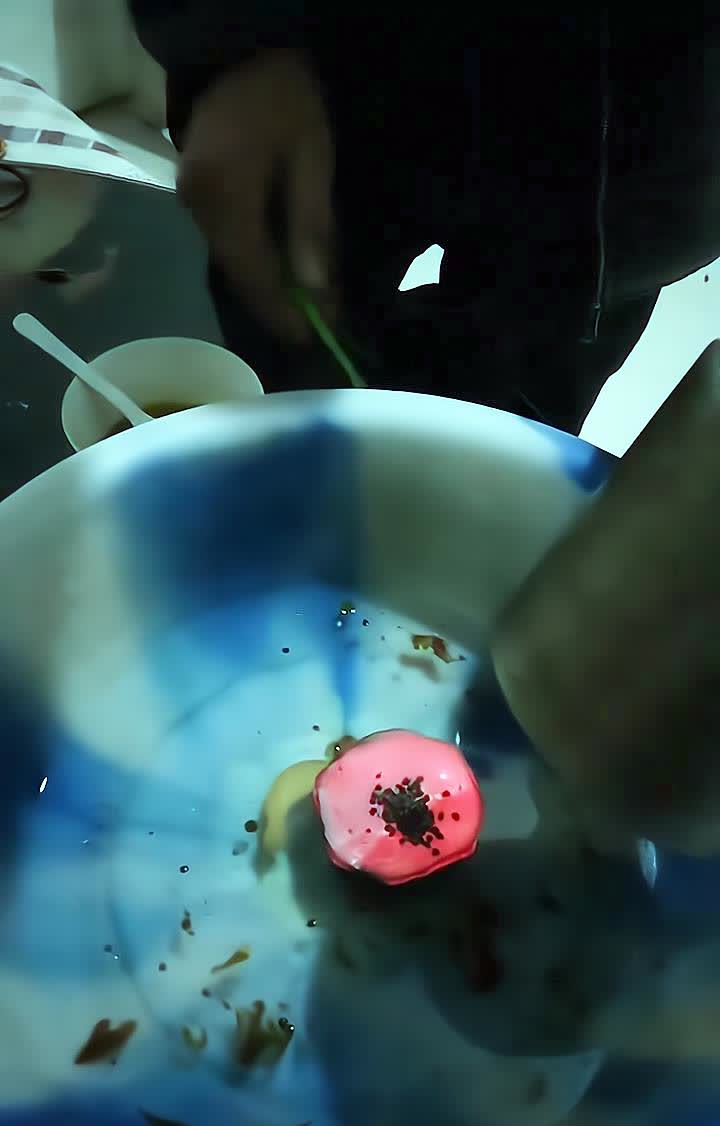 而油烟则顺着软管慢慢进入女子耳朵,这就是所谓的“古法熏牙虫”,最后的镜头里,男子还展示了一下被熏出来的几条牙虫。