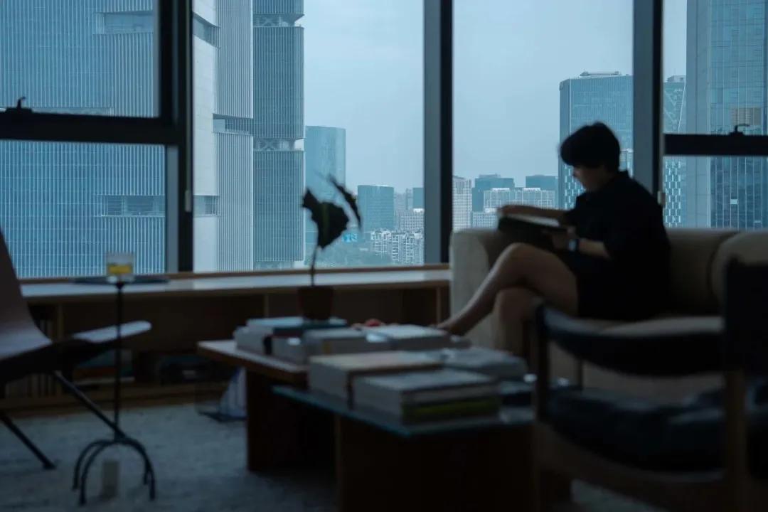 公共区域的设计逻辑更贴近居家客厅。一整面的玻璃幕墙被引入,极大地提升了该区域的采光量与通透感。窗外市区商圈的繁华景象被框入室内,形成一种动态背景,为日常办公注入了一丝“微度假”般的松弛心境。区域内,阅读角、沙发区与圆桌讨论区以自由的方式组合,能够灵活支持从独自沉思到团队协作的各种工作模式。