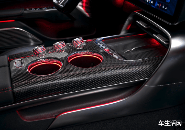 中控台则融合美学与功能性的设计。配备了闭合式储物箱以及两个用于手机感应快充的充电托盘。