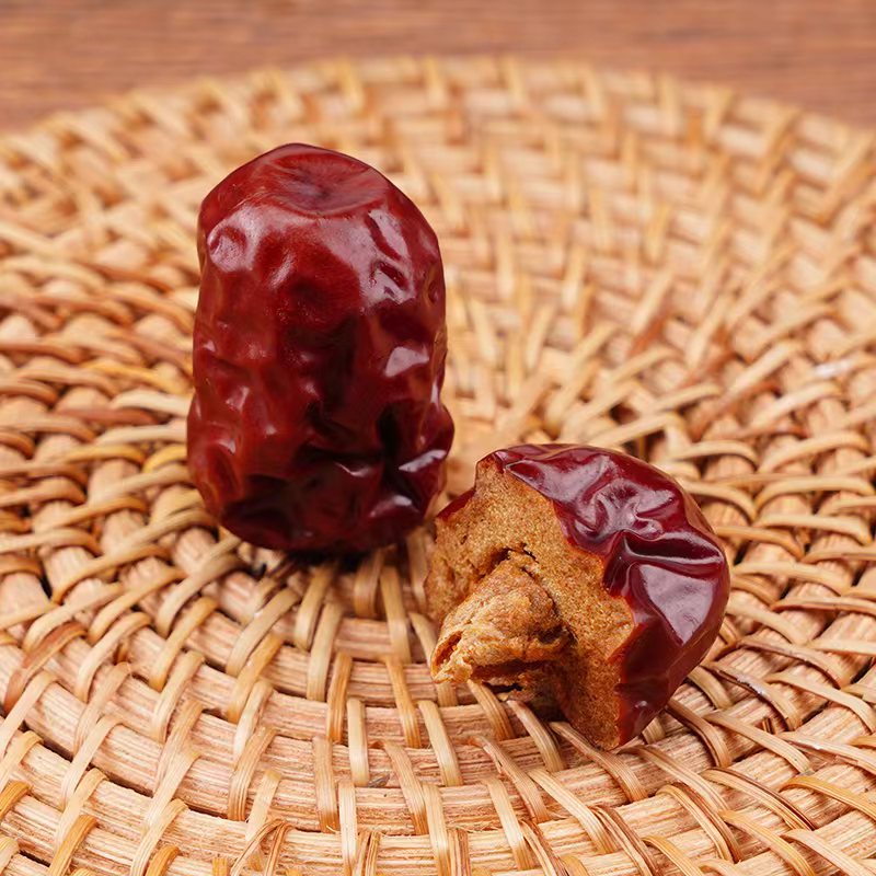 剥开兴县滩枣的外皮,便能直观感受到其 “肉厚核小” 的优势。枣皮色泽深红透亮,薄而有韧性,轻轻一撕便露出饱满厚实的果肉,质地细腻紧实却不失柔软,捏之不易变形,咬下时能感受到果肉在齿间缓缓化开的绵密触感。与普通枣类相比,兴县滩枣的果核极小,仅占果实体积的极小部分,几乎不影响食用体验,每一口都能尽情享受果肉的充盈与醇厚。这种形态上的优势,让味觉体验更加纯粹,无需在果肉与果核之间反复斟酌,只需专注于果肉带来的极致口感。