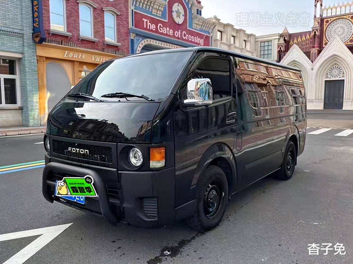 这是一台福田风景G7,汽油2.4L排量,动力刚刚好,6速自动挡,驾驶更轻松,4门4座,中轴低顶,通身大黑色车漆,犹如铁甲版黑金刚,威猛而神秘,车前加装了保险杠。