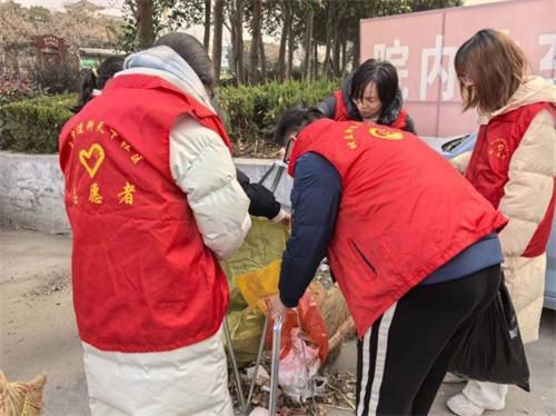 在绿色环保宣讲课堂结束后,实践队成员身着统一的红色志愿马甲,携带扫帚、簸箕、垃圾袋及垃圾夹等工具,在社区道路及周边区域开展环境清洁工作,躬身践行,为儿童树立环保标杆。他们按照前期划分的责任区域,以小组为单位推进作业:两人一组配合,一人用垃圾夹捡拾路面及绿化带边缘的烟头、纸屑、塑料碎片,另一人用扫帚将落叶、尘土归拢至簸箕内,以高效方式迅速完成社区环境清扫。