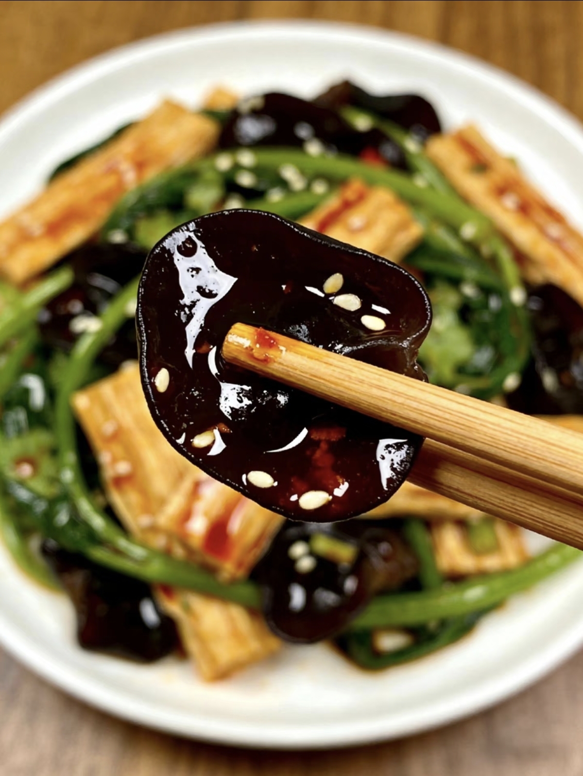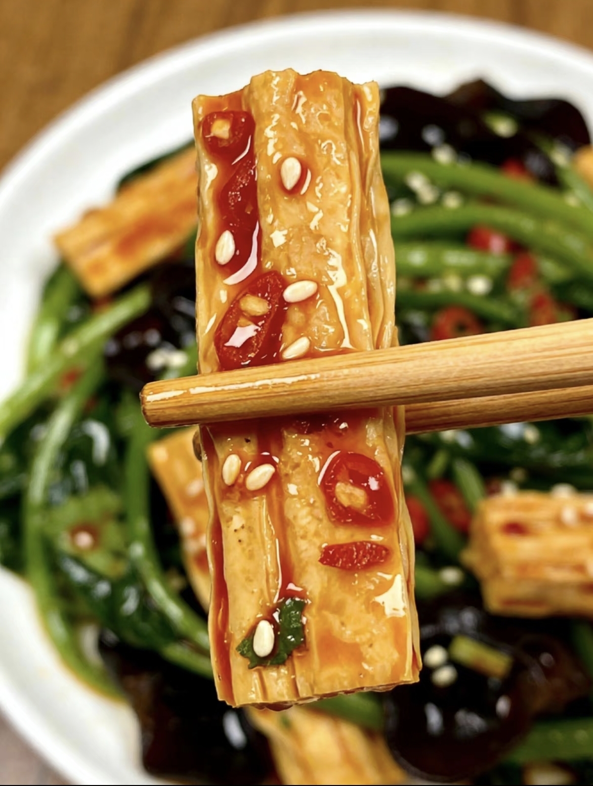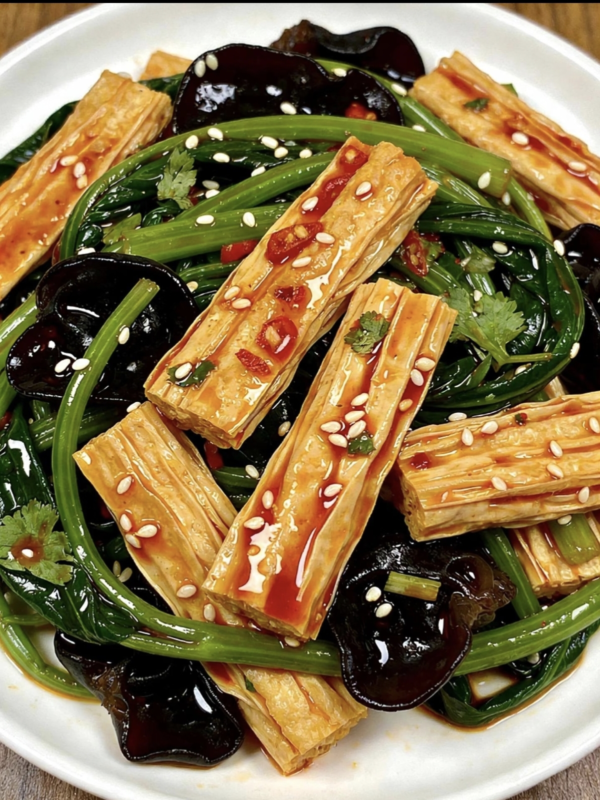 凉拌腐竹空心菜的营养价值同样值得称道。空心菜富含维生素C、钾和膳食纤维,能促进肠道蠕动;腐竹则是植物蛋白和钙的优质来源,两者搭配,低脂低卡却饱腹感强,对于追求健康饮食的人来说,既是解馋的凉拌菜,也是轻食减脂的好选择。