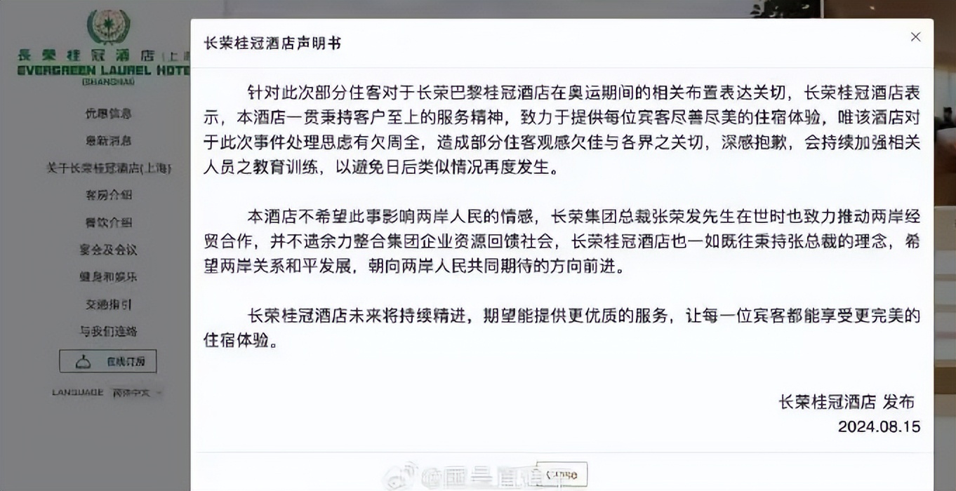 直到压力越来越大,长荣桂冠酒店(上海)官网才在8月15日发布声明,承认事件处理欠周全,表达了歉意,却始终避重就轻,没有真正认识到自己的错误。