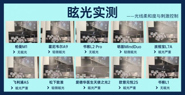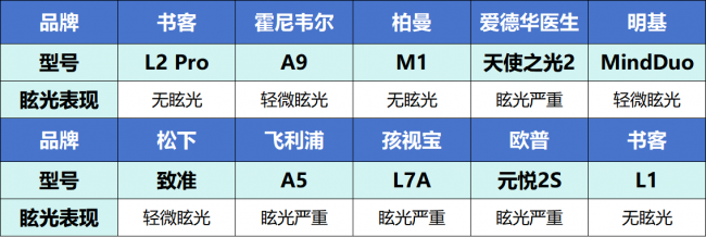 (3)第三梯队(眩光严重):飞利浦A5、爱德华医生天使之光2、孩视宝L7A、欧普元悦2S