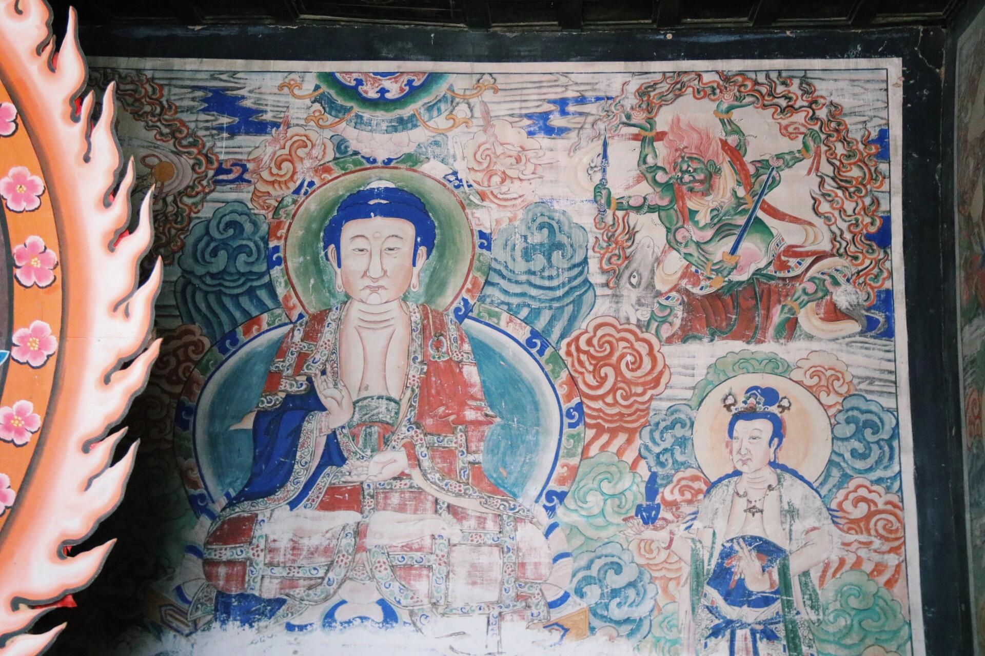 殿内四壁的清代壁画看似寻常,却隐藏着民间画工的智慧。在"善财童子五十三参"的题材中,出现了身着明代服饰的人物形象,这种"以今度古"的创作手法,恰是宗教艺术世俗化的生动体现。而北壁的"药师经变"中,描绘的市井生活场景里,货郎担上的拨浪鼓、酒肆前的招子,都成为研究金元时期社会风貌的珍贵图像资料。
