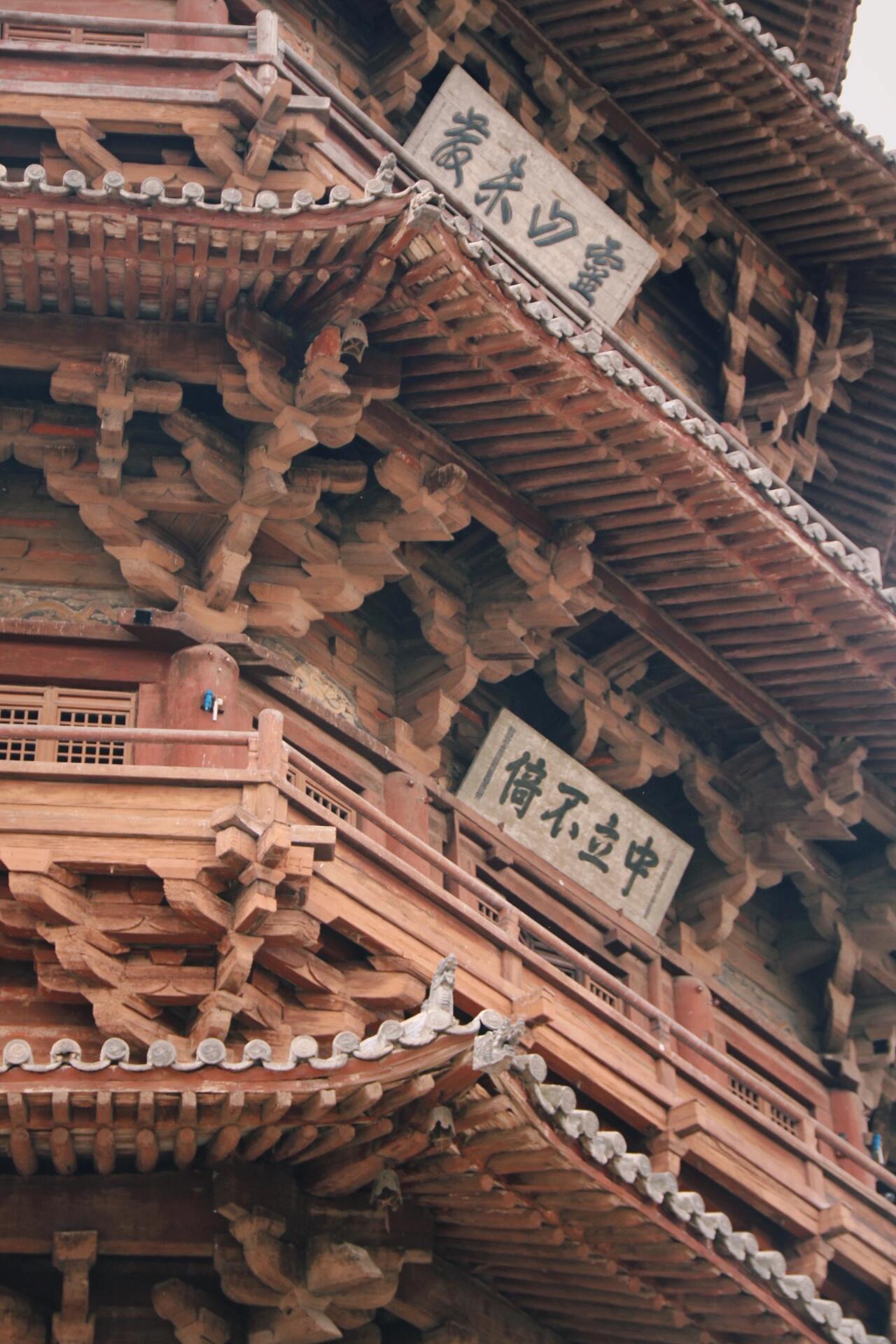 站在塔基前仰观,五层六檐的外观下暗藏着"明五暗四"的九层玄机。这种设计源于辽代工匠对结构力学的深刻理解:每层明层外附平坐暗层,形成"刚柔相济"的减震体系。全塔共用54种斗拱,从转角处的三抄双下昂斗拱到补间铺作的重拱计心造,犹如精密的机械齿轮,将水平推力分解为垂直荷载。最令人惊叹的是,整座塔体未用一枚铁钉,全凭榫卯咬合,这种"以柔克刚"的智慧,让木塔在历经40余次地震、200余次战火后依然巍然屹立。