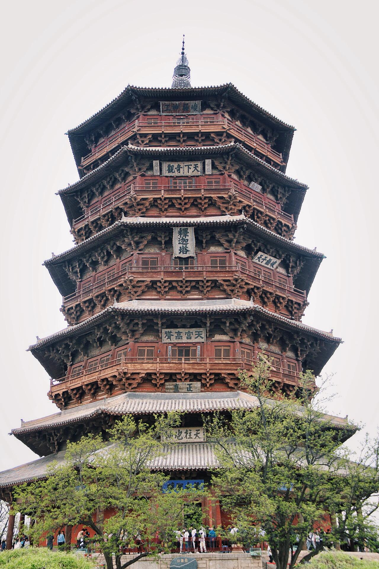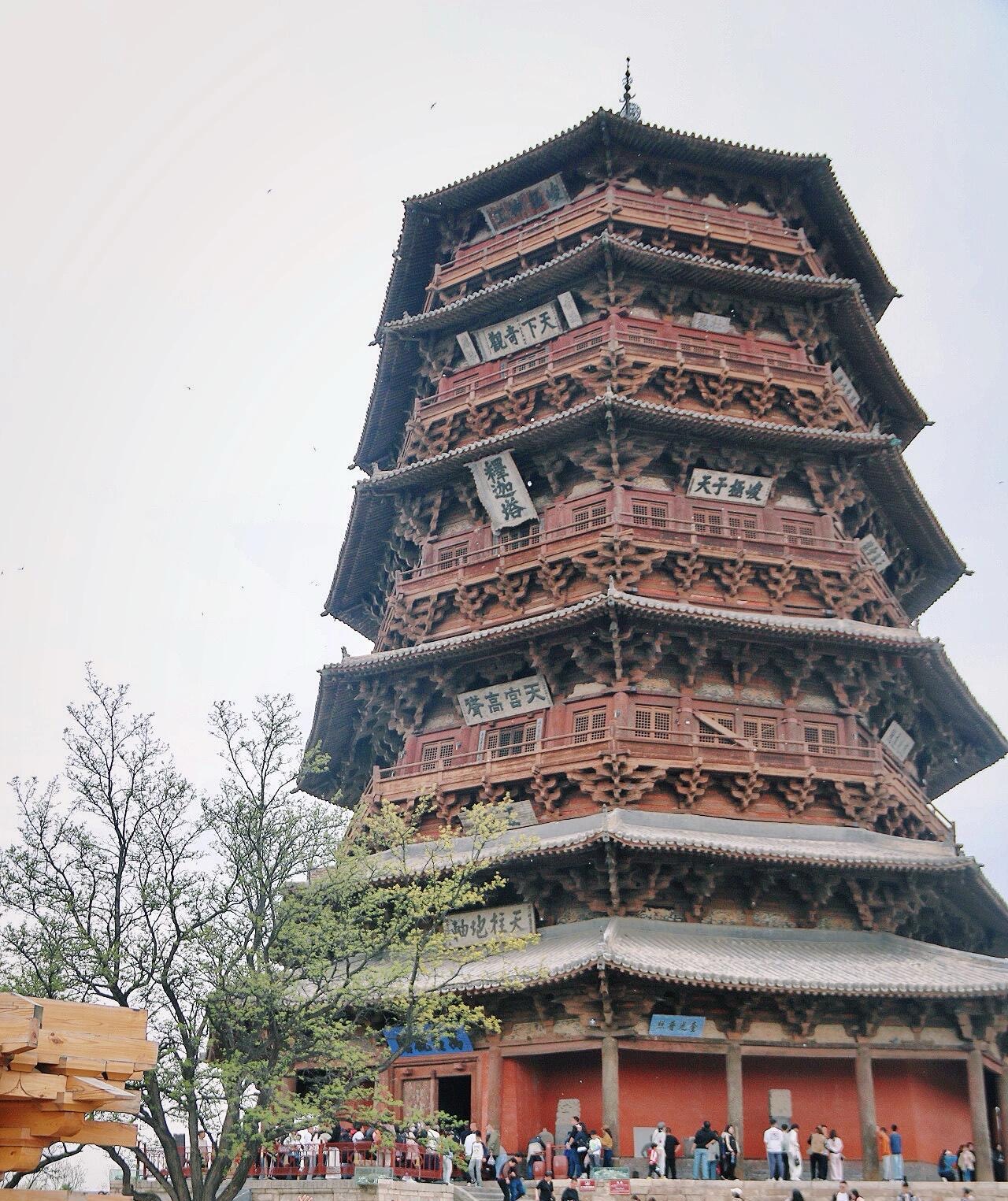 北纬39度的朔风掠过恒山余脉,将一片赭黄色丘陵切割出沟壑纵横的肌理。在桑干河支流的冲积平原上,一座八角形木构建筑刺破苍穹,以73.2米的高度俯瞰着千年岁月——这是建于辽清宁二年(1056年)的佛宫寺释迦塔,因坐落于山西应县,世人更习惯称其为应县木塔。当现代人的指尖抚过塔身斑驳的榆木纹理时,触碰到的不仅是中国现存最早的全木构楼阁式塔,更是世界木结构建筑史的"活化石"。