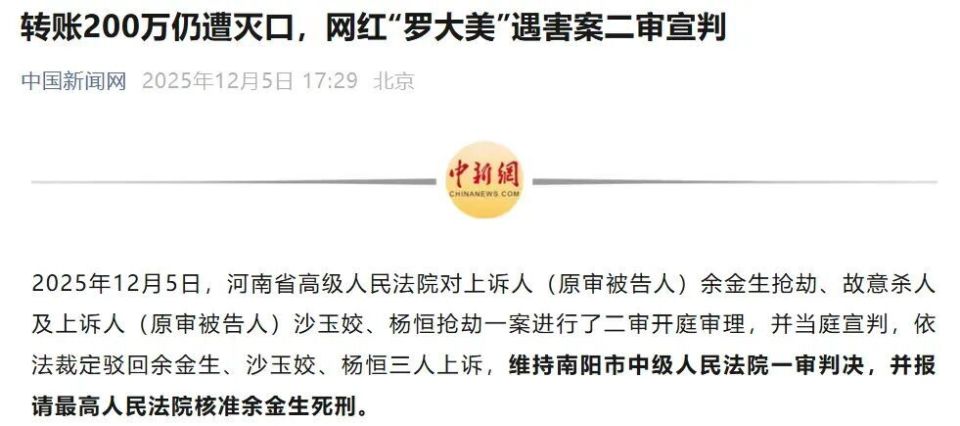 就像罗大美被害案,前几天二审开庭了,法院驳回了三名绑匪的上诉。