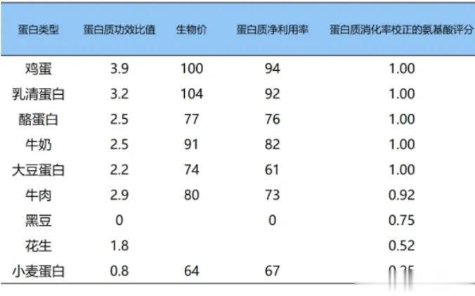 不同来源蛋白质的质量对比(PDCAACS 为核心参考指标):