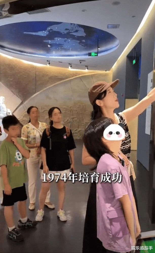 博物馆内灯光柔和,墙上挂满袁隆平的照片和科研历程。杨乐乐穿着灰色卫衣搭配牛仔裤,帆布鞋轻便随性,看起来平易近人。她一边走一边指着照片,对沐沐说:“这位爷爷研究水稻,让好多人不再挨饿。”小家伙瞪大眼睛盯着照片看,神情专注,好像在试图理解每一颗稻粒背后的故事。