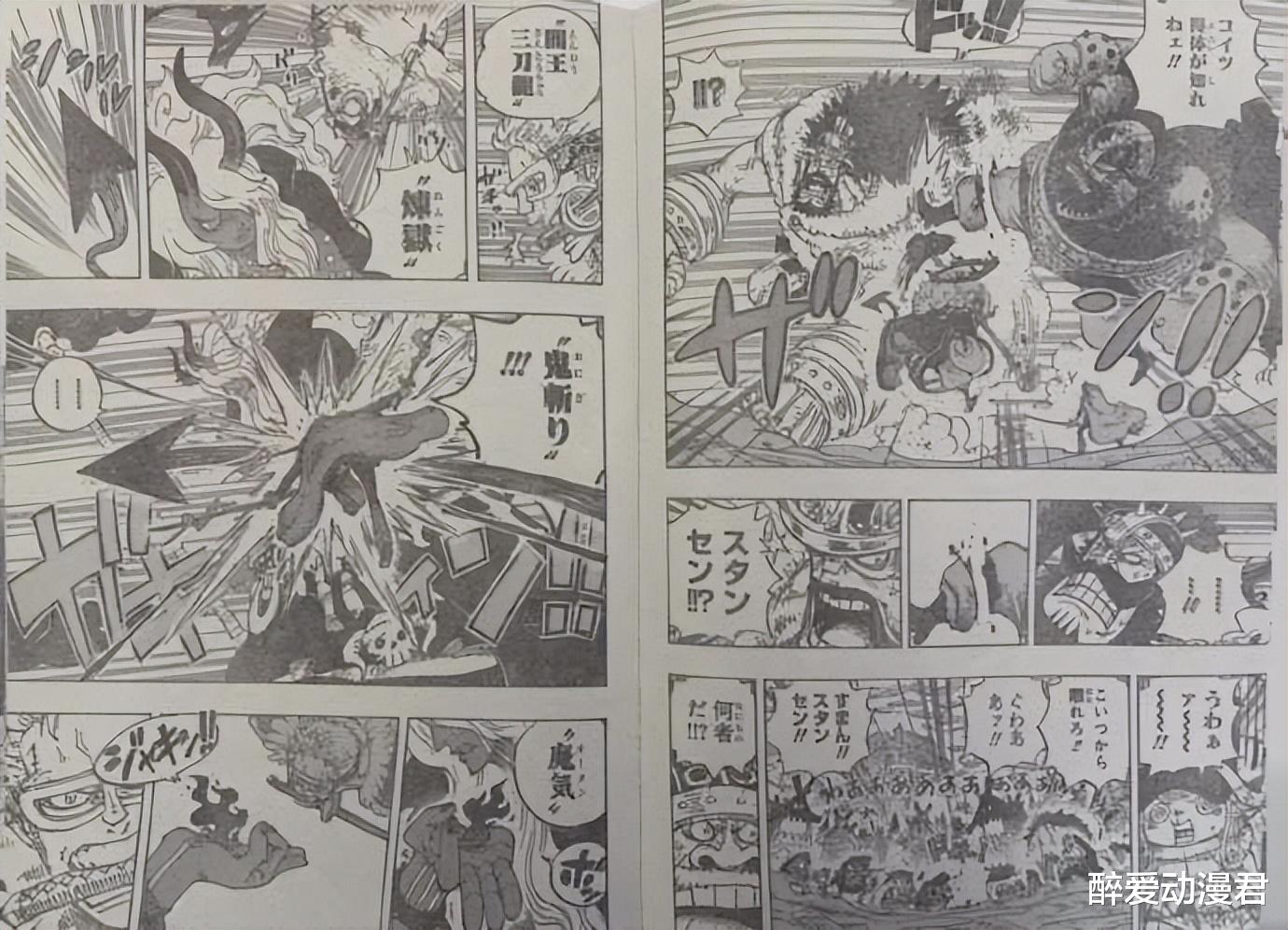 之后索隆直接出手,用出了阎王三刀流·炼狱·鬼斩,结果被伊姆的尾巴给挡住了攻击!
