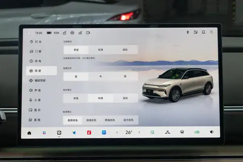 这款增程版搭载 1.5L增程器+后置单电机,电机最大功率200kW(约272马力),扭矩320N·m,官方0-100km/h加速7.6秒。日常开起来,城市通勤起步轻快,红绿灯起步或超车时动力随踩随有,不会觉得肉。高速表现,时速80km/h以内加速很顺畅,超过100km/h后动力储备稍显平缓,但高速巡航(120km/h)时车身稳定,风噪控制不错。支持多种动力模式切换,日常用“舒适模式”足够,想偶尔激情一下可以切“运动模式”,油门响应会更灵敏。底盘是前双叉臂+后五连杆独立悬架,还用上了铝合金材质,簧下质量减轻25%-30%,过减速带或坑洼路面时,震动过滤得比较柔和,后排乘客不会觉得颠簸。湿滑路面上,LMC一体化运动融合控制系统能主动维持车身稳定,开起来安全感挺足。