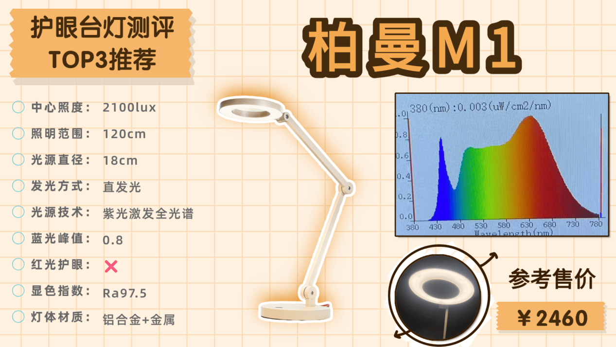 护眼台灯应该选择光谱图中415-455nm有害蓝光峰值在0.8以下的