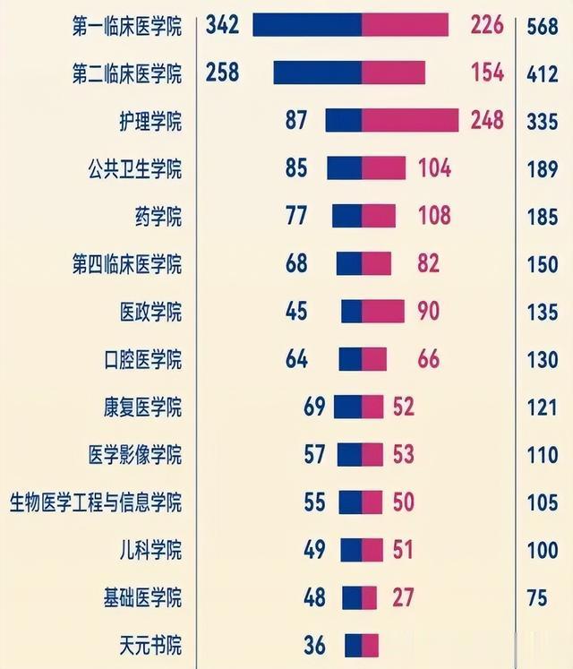 设有19个学院(含一个独立设置二级学院),有25个本科专业,3 个本(硕)博贯通培养专业方向,3个“5+3”本硕一体化专业方向。入选教育部基础学科拔尖学生培养计划2.0基地,国家级一流本科专业建设点占全校专业总数近八成。毕业生执业医师资格考试通过率位居国内同类院校前列,毕业生就业率始终保持在96%以上。