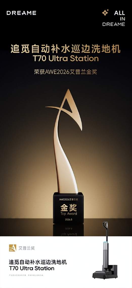 作为全球机械臂洗地机开创者,追觅调研发现34%消费者对边角清洁效果有更高期待。为此T70 Ultra Station搭载全新EdgeHunter巡边探洗臂,首次实现机械臂主动外扩清洁,搭配毫米级高精度TOF传感器,贴墙时自动外扩实现边角100%湿拖覆盖,极低空间可手动外扩30mm深入缝隙。因此,T70 Ultra Station斩获了AWE2026家电界最高荣誉艾普兰金奖,成为本届展会唯一获此殊荣的洗地机产品。