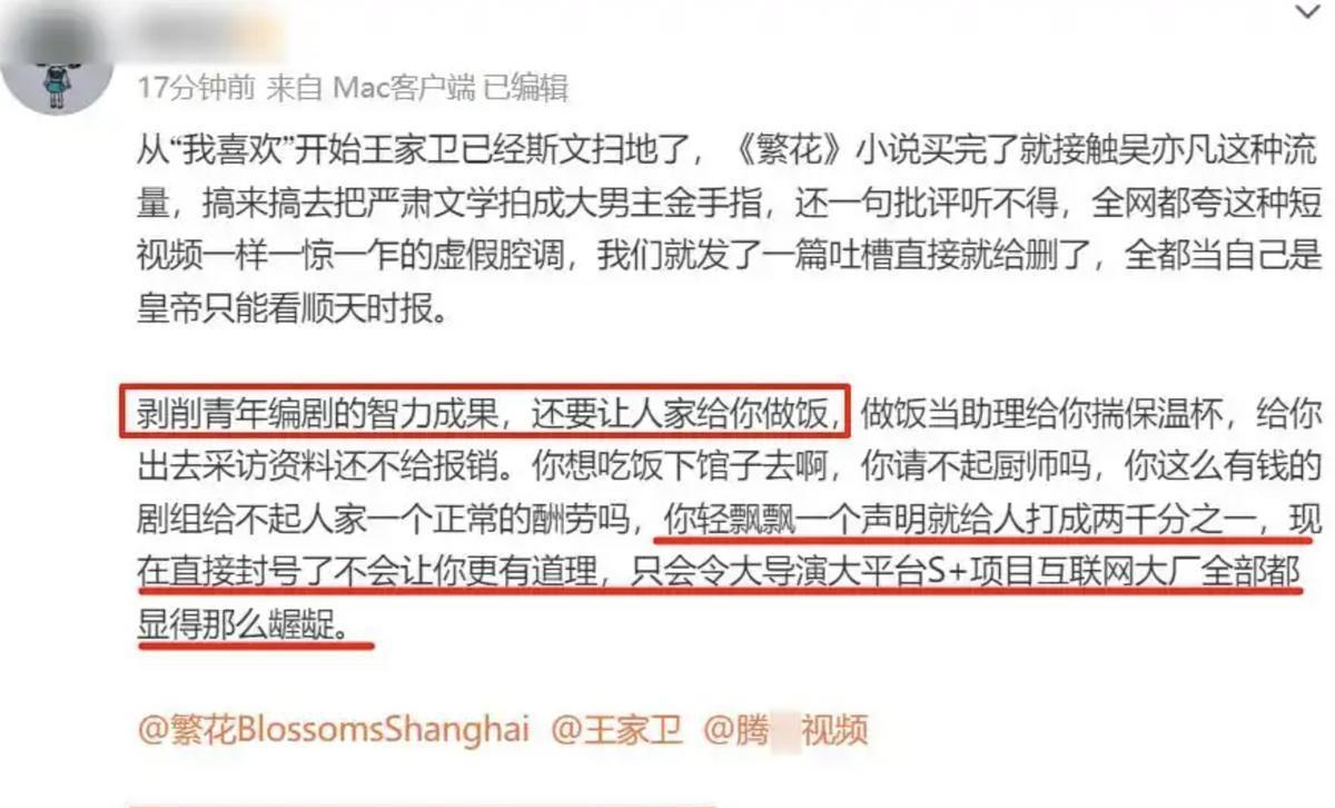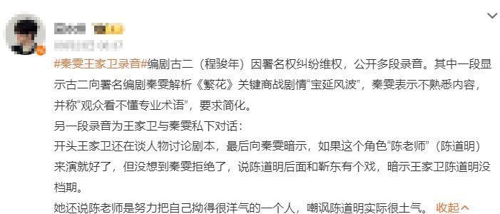 不过,这段揭露王家卫和秦雯丑态的录音,不过是《繁华》编剧事件背后的一小部分而已……