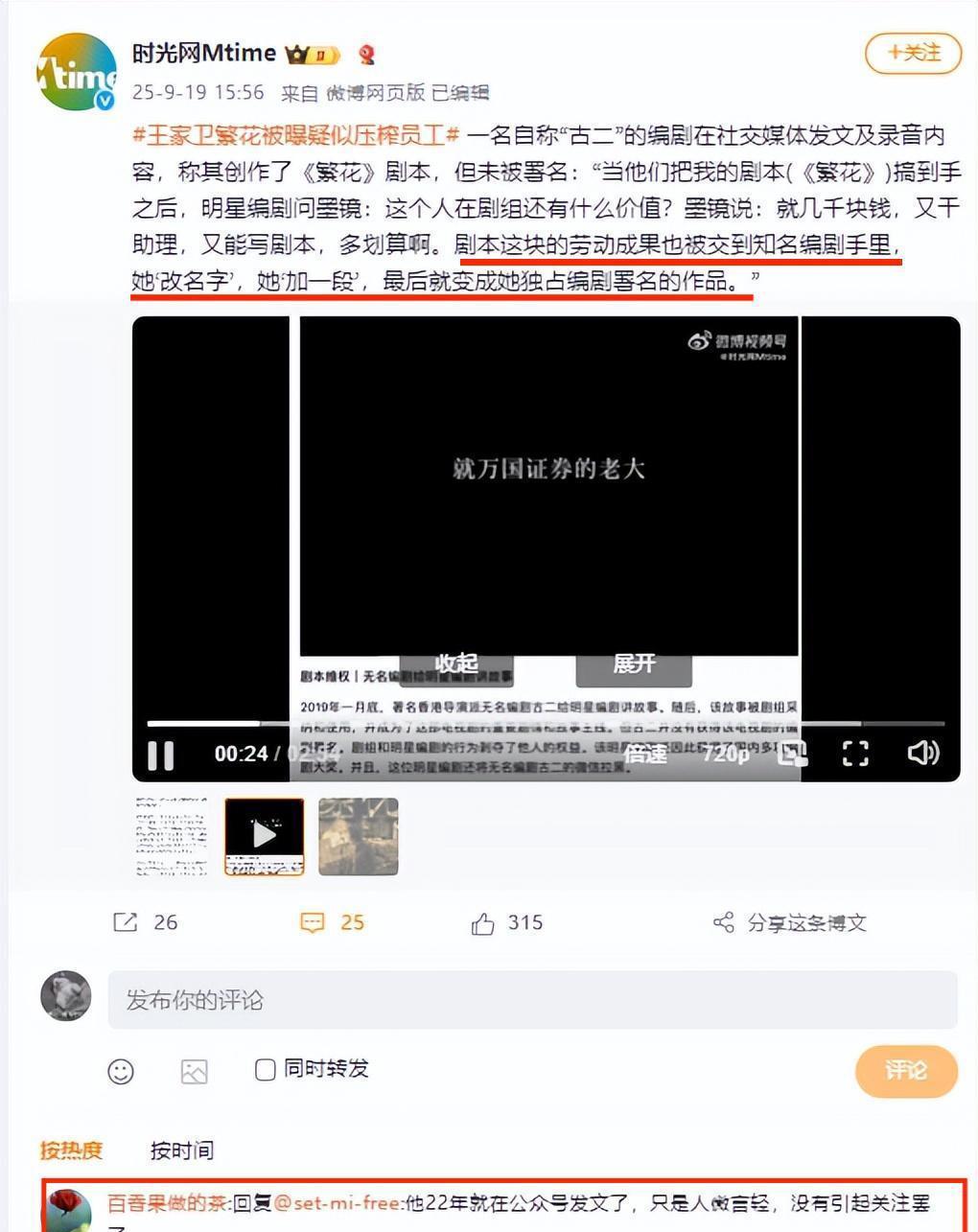 有网友觉得古二太单纯,应该先把署名权和工资啥的谈明白,再去给王家卫打工。