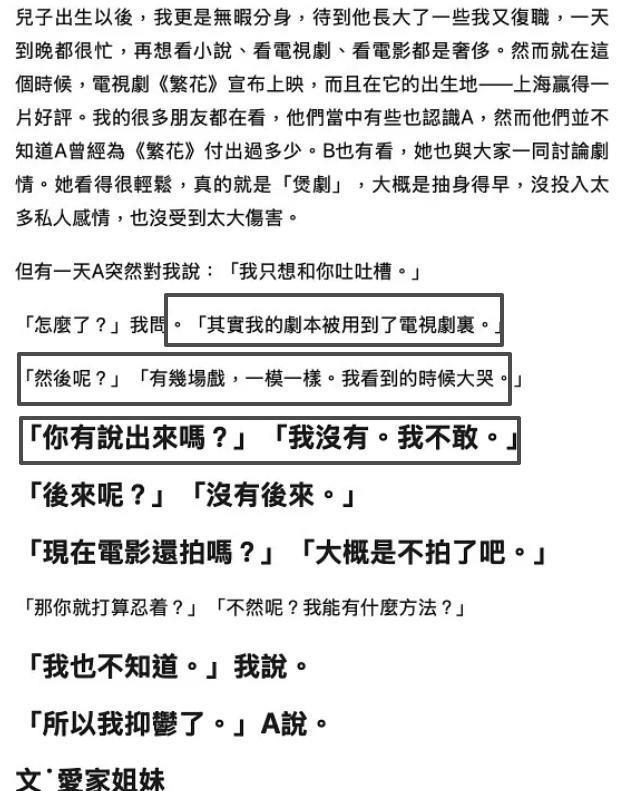 编剧一看,发现电视剧里的某些情节,居然和当初自己写的电影一模一样。