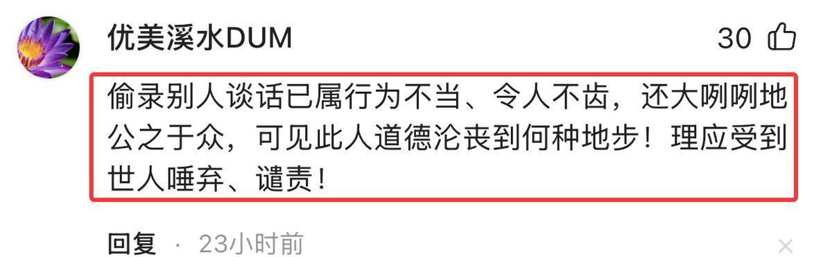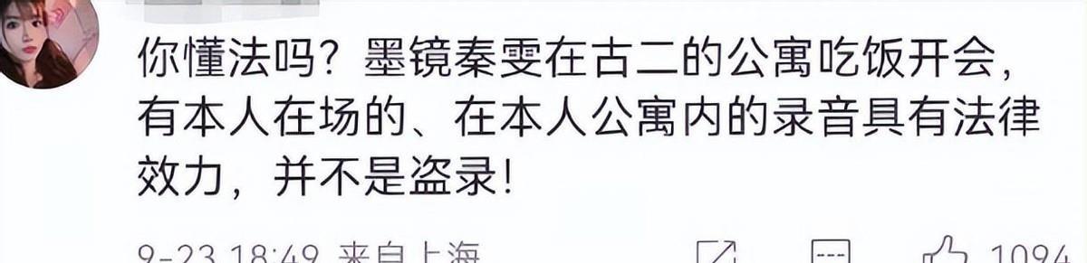 有人在网上批评古二偷偷录音,说这算得上是小人手段,太不讲究了。