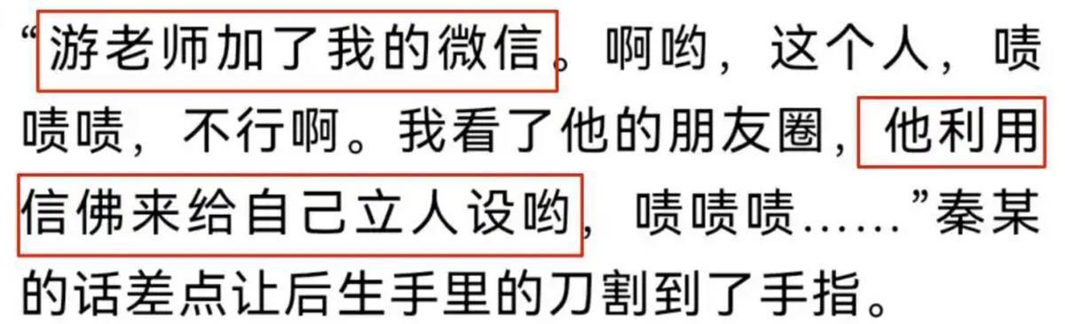秦雯查看游本昌的朋友圈,发现里面发的都是有关佛学的东西。