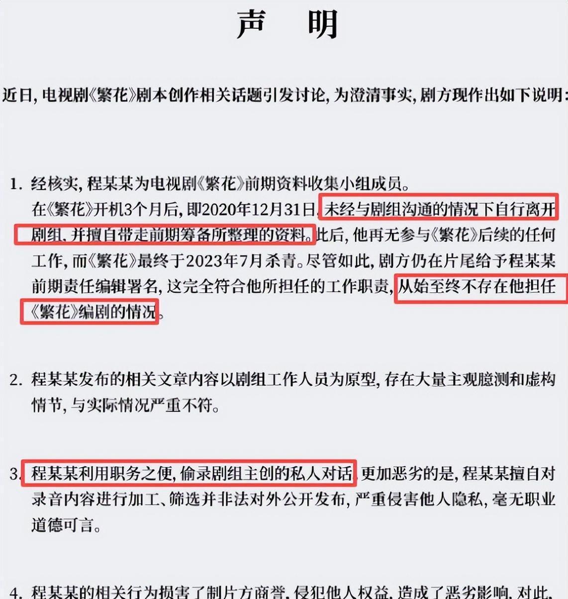 处理完提出问题的人之后,《繁花》随意地发出一条声明,显得漏洞挺多。