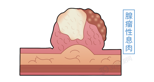 健康的大肠内壁原本由排列整齐的细胞组成,当出现大肠腺瘤(也称腺瘤性息肉)时,肠黏膜会形成突起的小肿块。