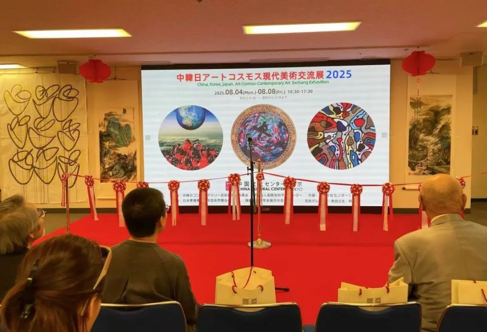2025年8月4日下午四点,【中韩日当代艺术展】在日本东京中国文化中心隆重启幕。此次展览集结了活跃于中国、韩国、日本艺术界的当代艺术家的作品,以丰富多元的创作展示了东方艺术之美与当代精神的交融。开幕当天,中韩日文化艺术界五十多位艺术嘉宾到场共同见证这一东亚文化盛事。