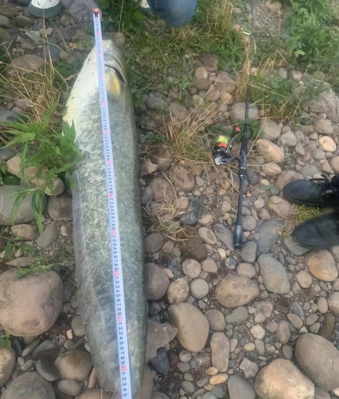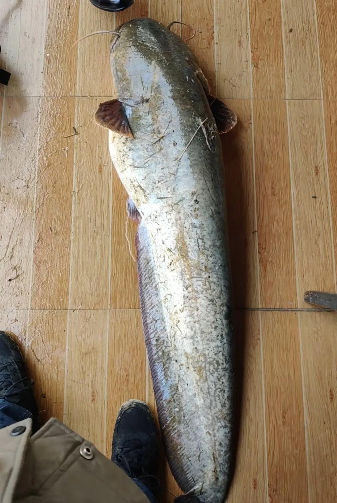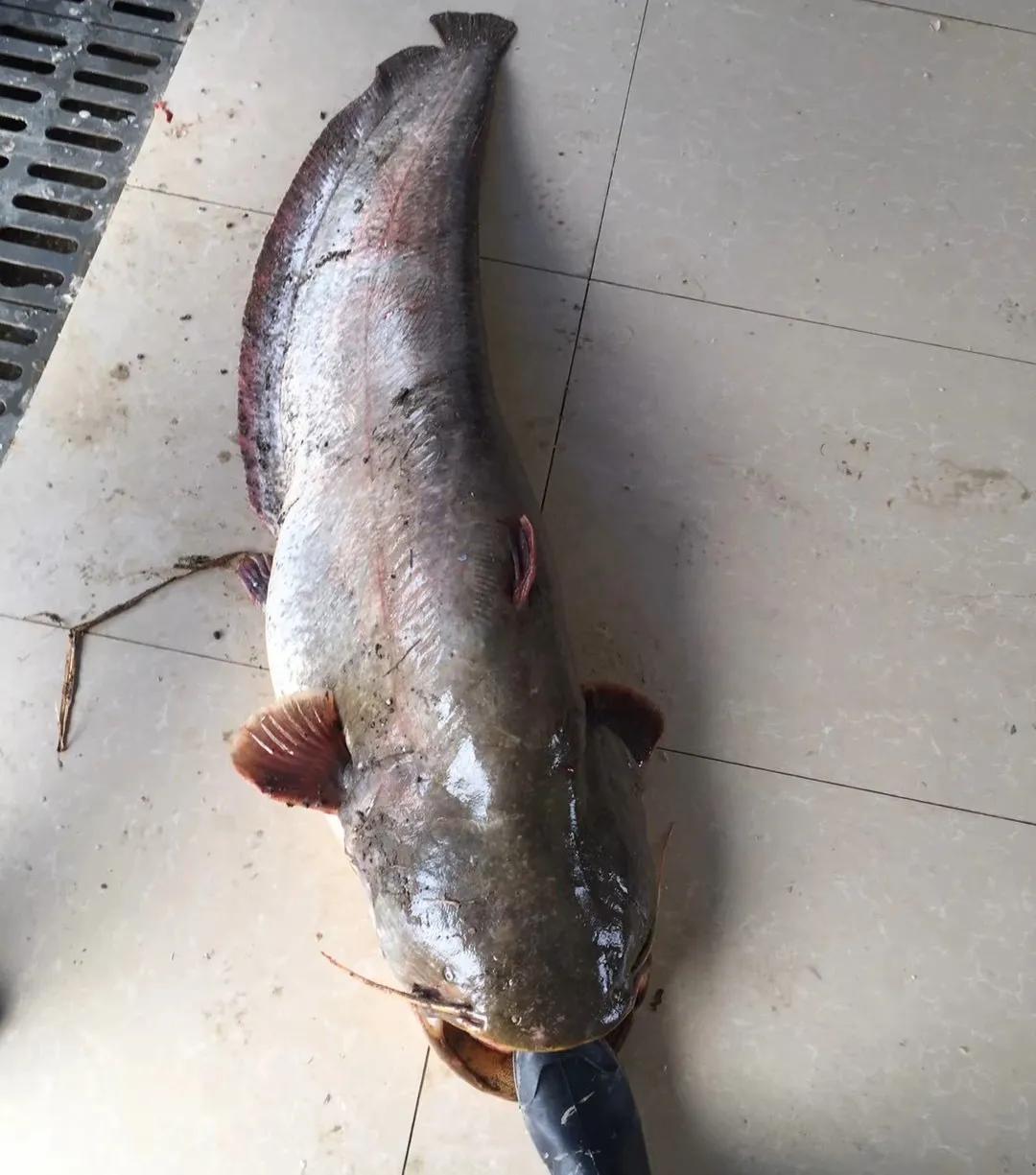 上图中这条巨型大口鲶鱼,是被一位贵州的钓鱼爱好者钓起来的。