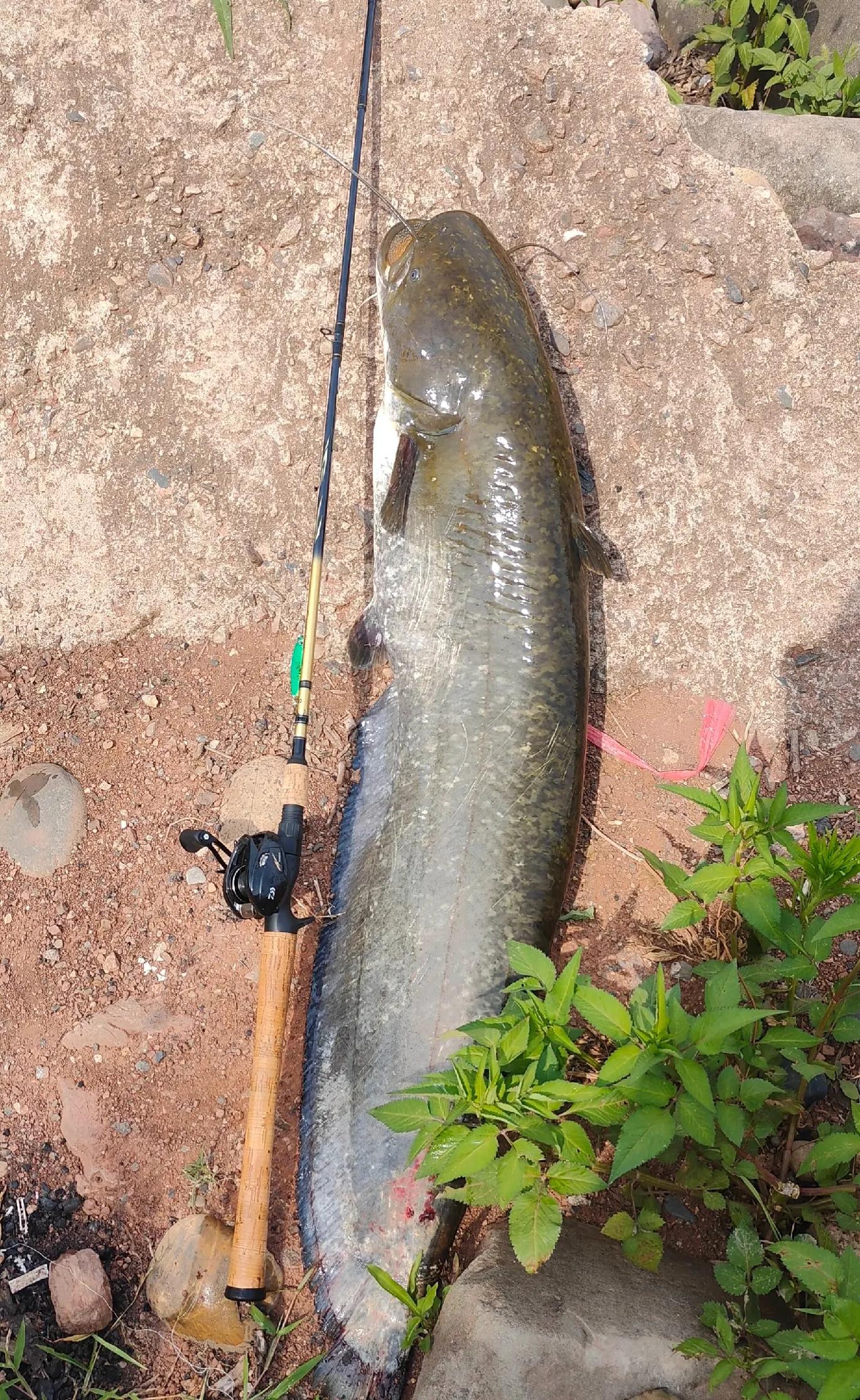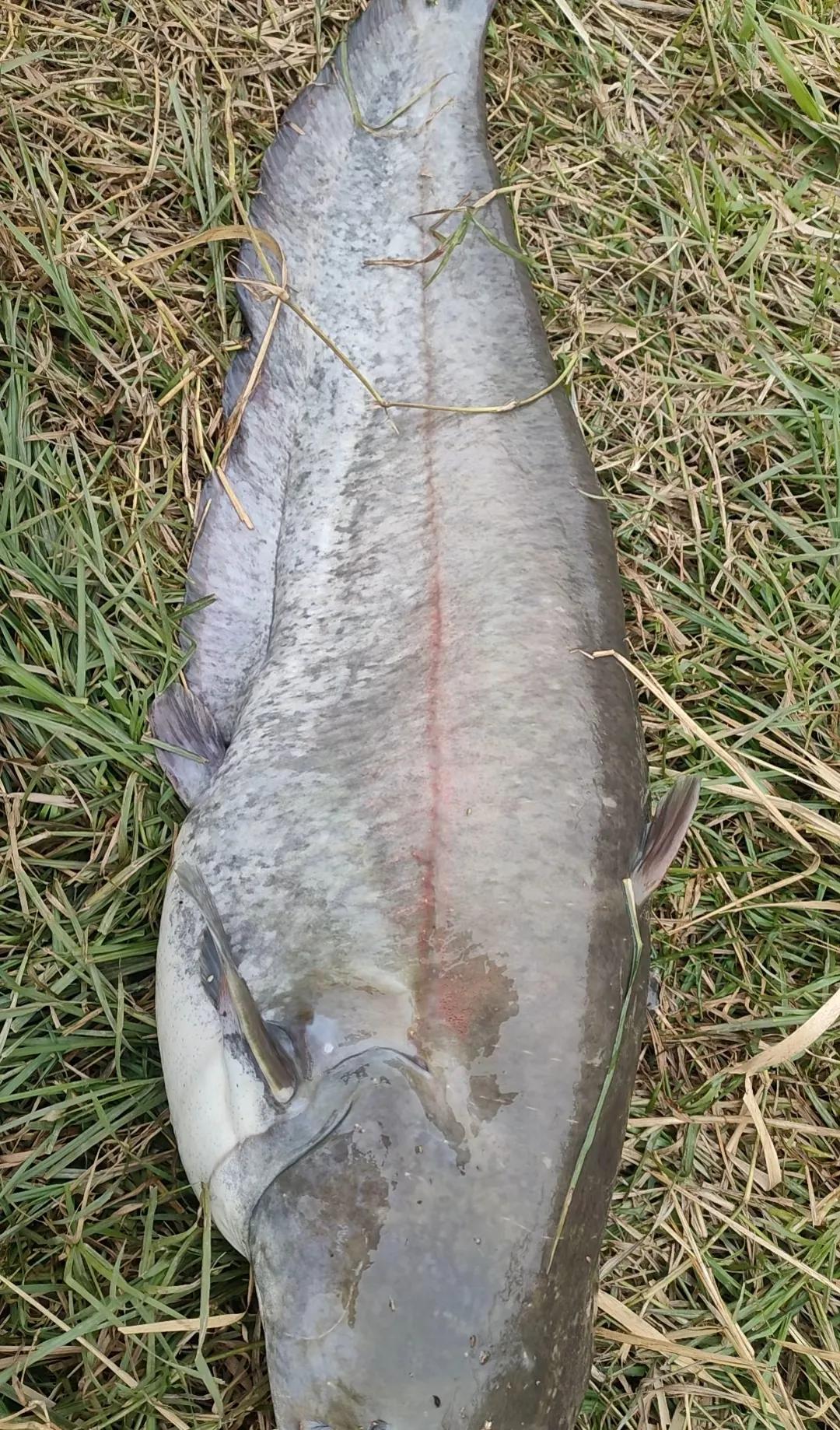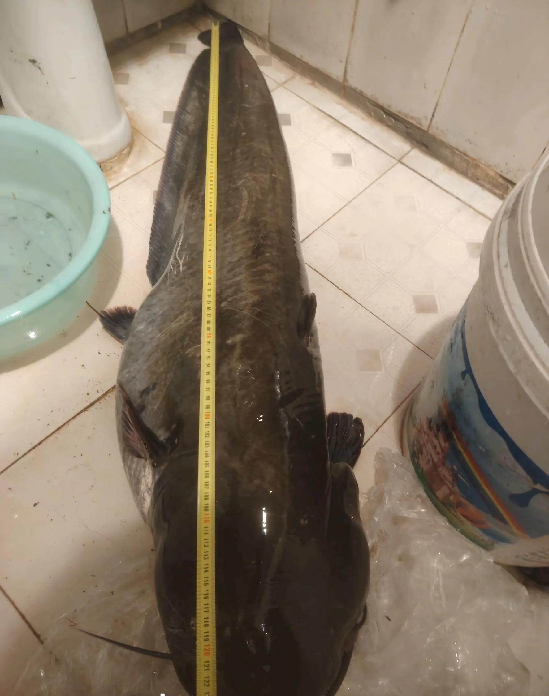 上图中这条巨型大口鲶鱼,是被一位贵州的钓鱼爱好者钓起来的。