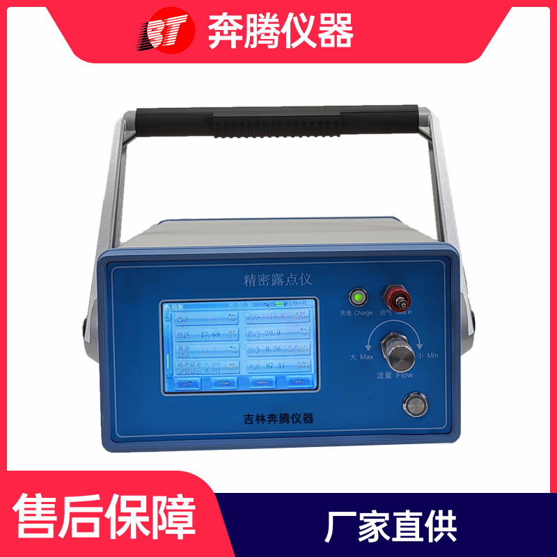 直接显示露点。镜面制冷的方法有:半导体制冷、液氮制冷和高压空气制冷。镜面式露点仪采用的是直接测量方法,在保证检露准确、镜面制冷高效率和精密测量结露温度前提下,该种露点仪可作为标准露点仪使用。目前上精度达到±0.1℃(露点温度),一般精度可达到±0.5℃以内。 电传感器式露点仪: 采用亲水性材料或憎水性材料作为介质,构成电容或电阻,在含水份的气体流经后,介电常数或电导率发生相应变化,测出当时的电容值或电阻值,就能知道当时的气体水份含量。建立在露点单位制上设计的该类传感器,构成了电传感器式露点分析仪。目前上精度达到±1.0℃(露点温度),一般精度可达到±3℃以内。 电解法露点仪: 利用五氧化二磷等材料吸湿后分解成极性分子,从而在电极上积累电荷的特性,设计出建立在含湿量单位制上的电解法微水份仪。目前上精度达到±1.0℃(露点温度),一般精度可达到±3℃以内。 晶体振荡式露点仪: 利用晶体沾湿后振荡频率改变的特性,可以设计晶体振荡式露点仪。这是一项较新的技术,目前尚处于不十分成熟的阶段。国外有相关产品,但精度较差且成本很高。 红外露点仪: 利用气体中的水份对红外光谱吸收的特性,可以设计红外式露点仪。目前该仪器很难测到低露点,主要是红外探测器的峰值探测率还不能达到微量水吸收的量级,还有气体中其他成份含量对红外光谱吸收的干扰。但这是一项很新的技术,对于环境气体水份含量的非接触式在线监测具有重要的意义。