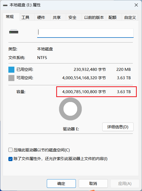 🔺先看实际显示的容量,因为电脑和硬盘厂商计算单位的差异(十进制和二进制),4TB的硬盘在电脑上显示3.6TB到3.7TB之间便属正常。希捷酷狼NAS硬盘这里显示的是3.63TB说明是没有问题,容量没有虚标。