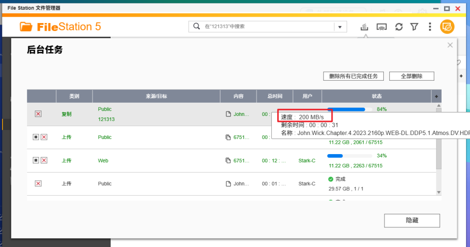 🔺尝试内部对拷,速度在200MB/s左右,当然,也是影视大文件。