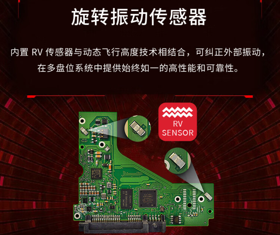 🔺希捷酷狼NAS硬盘4TB及以上容量硬盘都会内置旋转振动传感器来优化和减小硬盘的振动情况。它这个其实更多考虑的是NAS使用场景中,多块硬盘在一起的共振,进而提供更高的性能与可靠性。