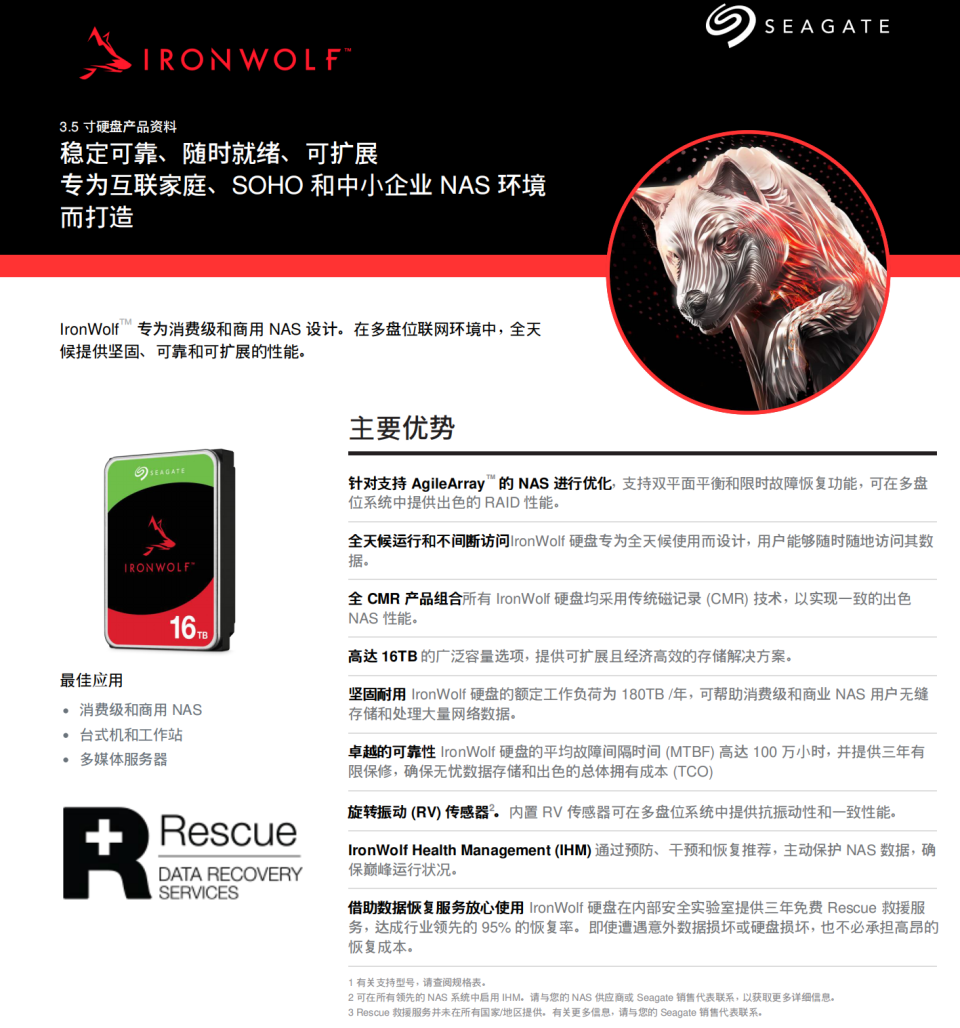 希捷酷狼NAS硬盘实测希捷酷狼硬盘亮点优势: