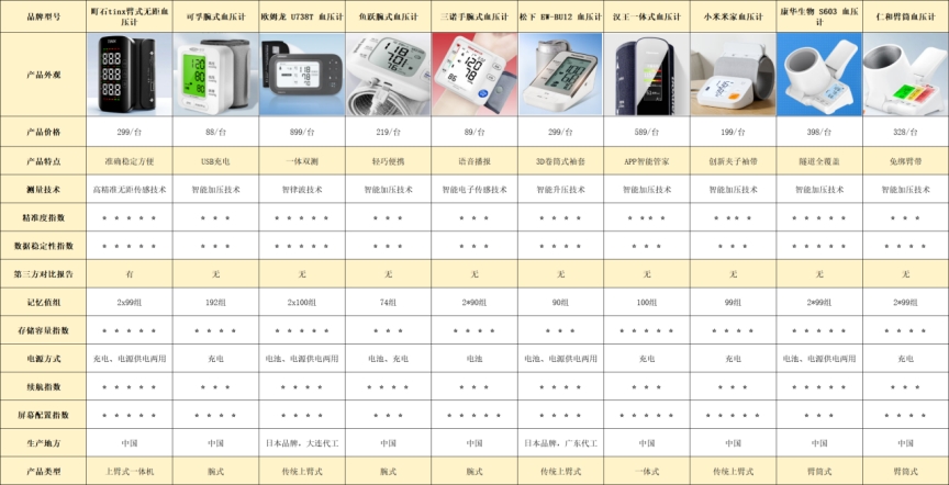 下面是我近期测评使用过的部分血压计产品: