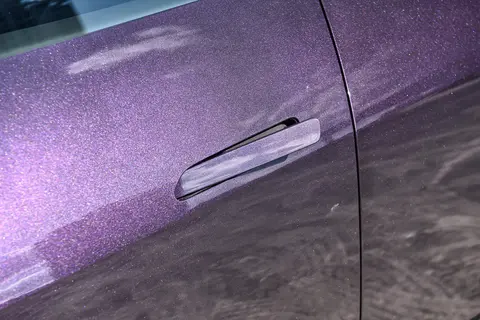 我们此次试驾的车型,选了 2026 款新增的晴蓝外饰,这是新款车型的专属配色,设计灵感源自 “空山新雨后” 的意境。实际观察发现,在阳光下,车漆会泛出淡淡的珠光,精致感十足;到了阴天,颜色又变得沉稳大气,整体质感比普通车漆细腻不少。此外,2026 款阿维塔 07(读测评)的车漆厚度约 150 微米,采用的是 2K 清漆层,耐用性和光泽度都有不错表现。