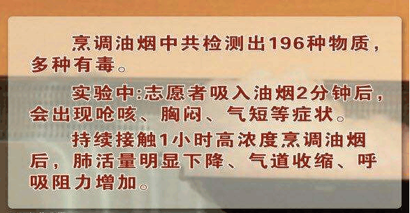 据报道肺癌的患者里,除了吸烟的男性占一定比例,另外占了很大比例的是在厨房劳作日日与油烟为伍的家庭主妇们。长期呼吸在高浓度的油烟环境中,会出现呛咳、胸闷、气短等症状,对这部分人的肺造成了不可逆转的伤害。
