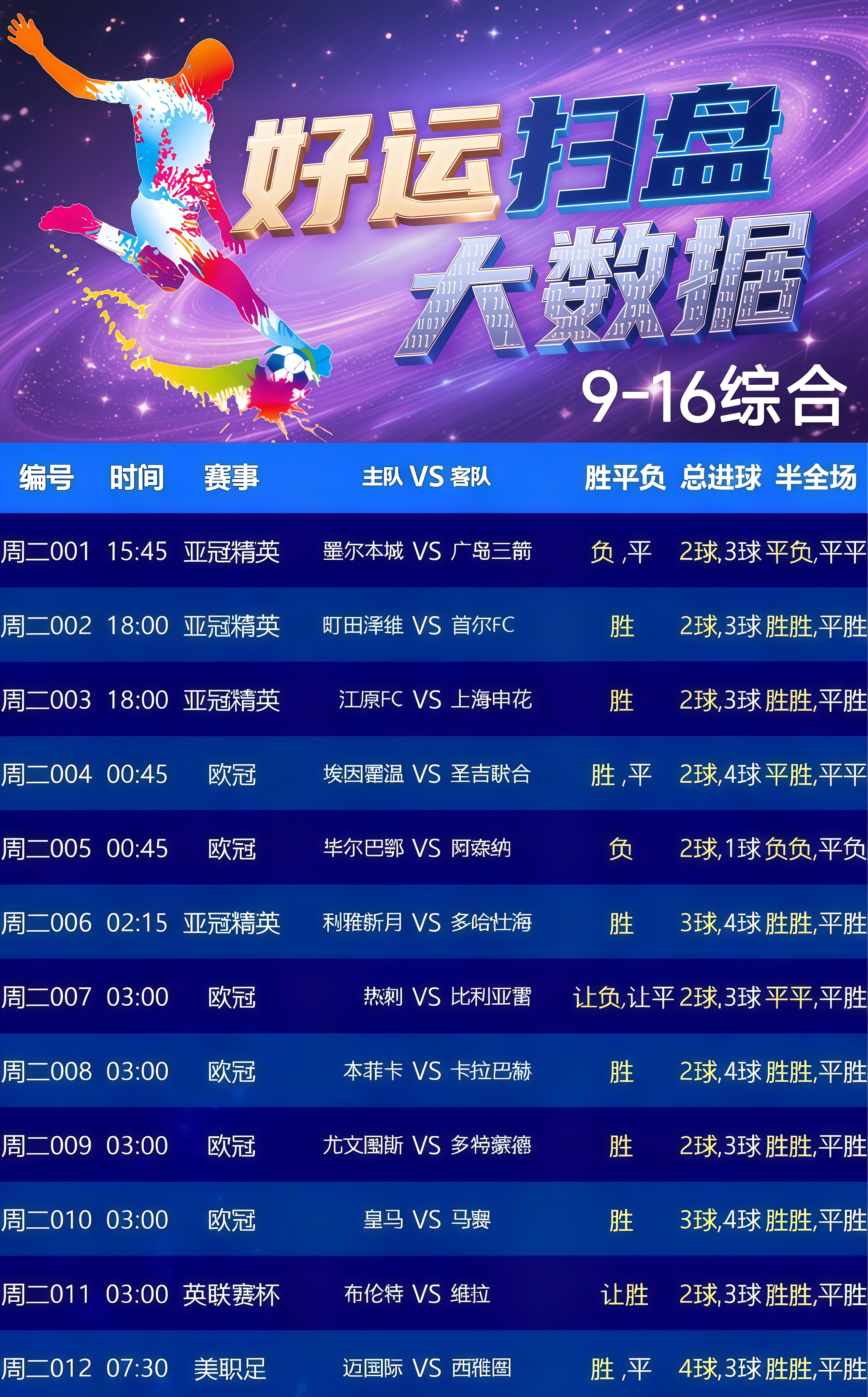 昨日足球11中8,命中率72.7%!今日12场足球比赛,祝我们好运!篮球今日2场赛事!