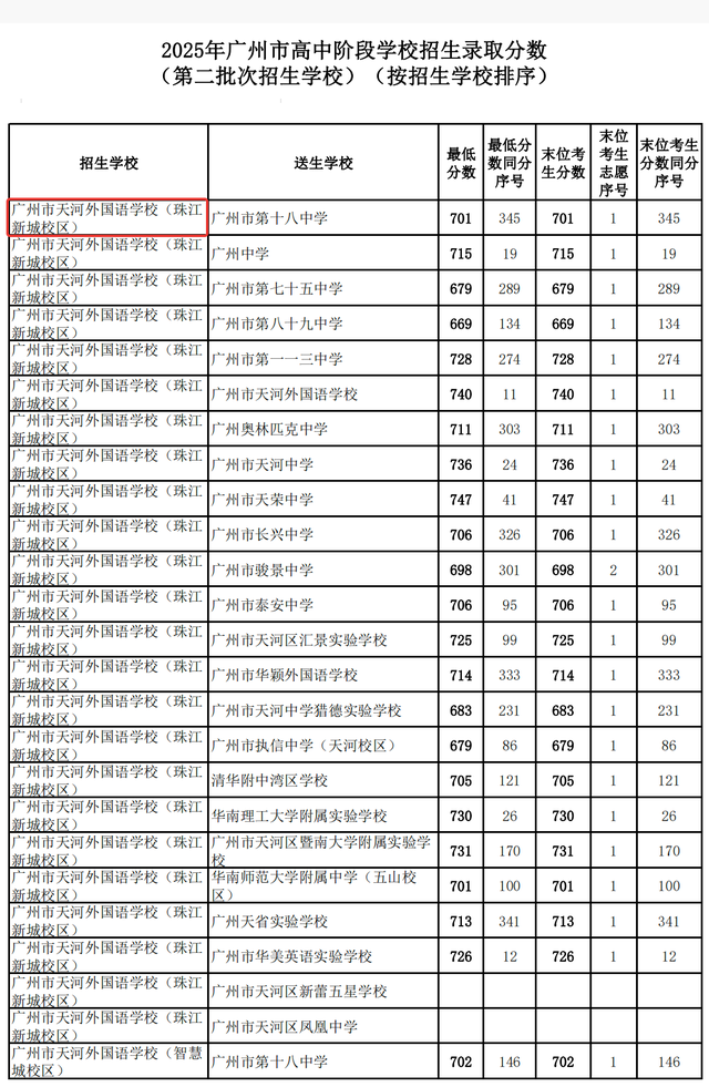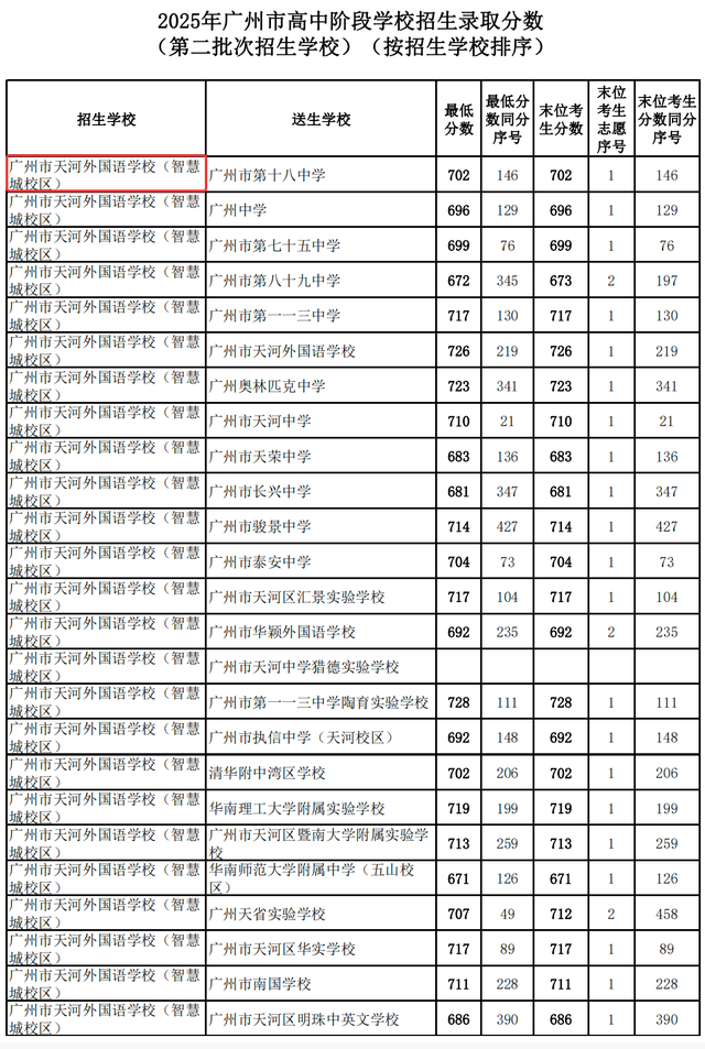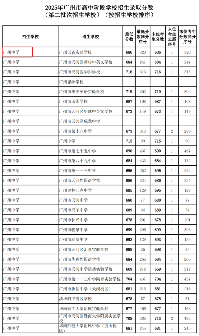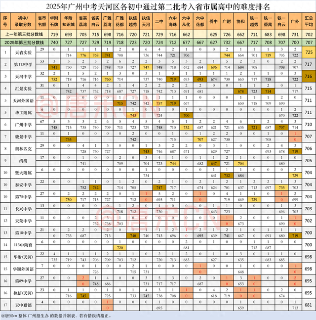 从2025广州中考第二批录取情况看天河区初中实力排名: