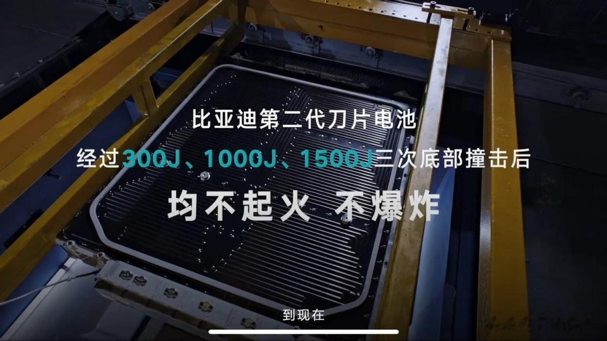 电池底部碰撞,比亚迪更是用10倍国标的能量撞击了电池底部,电池包在受损的情况下,依旧没有起火爆炸。这一系列的硬核挑战也印证了比亚迪第二代刀片电池已经将安全武装到了牙齿。