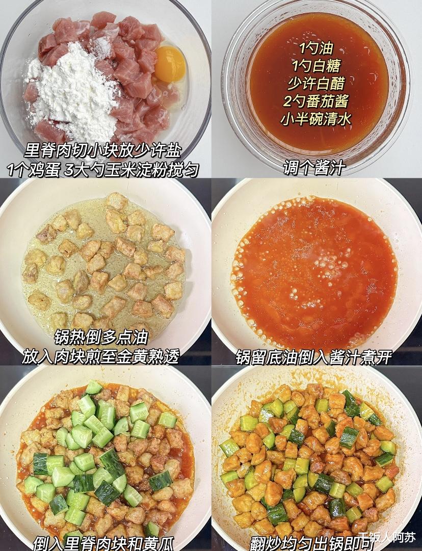 首先,准备食材。你需要里脊肉、鸡蛋、玉米淀粉、盐、油、白糖、白醋、番茄酱和黄瓜。里脊肉切小块,放入少许盐,加入一个鸡蛋和三大勺玉米淀粉,搅拌均匀。这一步是关键,腌制肉块时加入鸡蛋和淀粉,可以使肉质更加嫩滑,炸制时更容易形成酥脆的外皮。