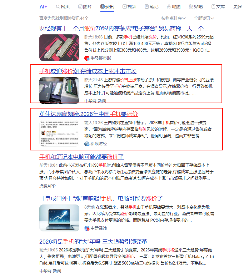 最近刷遍社交平台的手机/电脑涨价预警,并非空穴来风。随着AI数据中心对内存颗粒的疯狂抢购,三星、英伟达、SK海力士等存储巨头已官宣将内存价格上调30%,叠加显示核心芯片等关键部件受上游原材料短缺影响,一场席卷消费电子领域的成本风暴,正加速向市场蔓延。