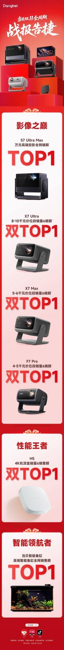 双十一刚发布的新品当贝X7 Max开售即巅峰,在5-6k价位段销量销额双TOP1。这份成绩单的背后,是当贝对不同价位段用户需求的精准覆盖,尤其是当贝X7 Max更是成为中端市场的性价比标杆。